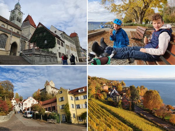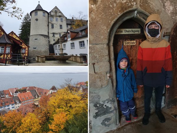 Bereits zum Frühstück prasseln die Regentropfen gegen die Fensterscheibe, da können wir es ganz ruhig angehen lassen. Gegen 11 Uhr stiefeln wir hinter dem Haus die Treppen zur Oberstadt hoch und stehen direkt vor der Burg Meersburg. Deren Erkundung bietet spannende Einblicke in längst vergangene Jahrhunderte und zudem ein trockenes Plätzchen für eine gute Stunde. Zurück in der Ferienwohnung gibt es rote Nudeln zum Mittagessen, anschließend ruht sich der kleine Ritter aus bevor mit Malen, Basteln und Spielen der Regentag zu Ende geht.