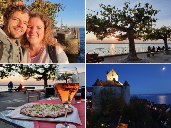Zeit für einen vorerst letzten Tapetenwechsel dieses Jahr, wir nutzen die Herbstferien um die wundervollen Bodensee-Erinnerungen von 2018 aufzufrischen. Kurz nach 10 Uhr geht die Fahrt im T6 von Europcar los. Ganz entspannt rollen wir über die A71, A7 sowie ab Ulm auf der gut ausgebauten B30/B33 gen Süden und kommen inklusive zweier Pausen gegen 17 Uhr in Meersburg an. Dort beziehen wir eine wundervolle Ferienwohnung (560 EUR/Woche) in einem liebevoll restaurierten Fachwerkhaus direkt in der Unterstadt. Anschließend lockt uns das spätsommerliche Wetter an die Bodensee-Promenade, wo der Tag einen genussvollen Abschluss bei Flammkuchen und Wein findet.