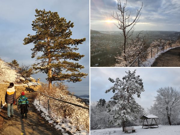 Auch im Home-Schooling ist Bewegung wichtig, deswegen radeln wir nach Arthur’s Mittagsschlaf zum Jenzigfuß und folgen mal wieder dem Saurierpfad bergan. Mit jedem Höhenmeter wird es winterlicher und während die weiße Pracht in Jena leider schon geschmolzen ist, präsentiert sich das Jenzig-Plateau noch zauberhaft verschneit. Der Aufstieg hatte natürlich noch einen weiteren Grund und nach ein paar Koordinaten-Berechnungen anhand lokaler Info-Tafeln können wir erfolgreich die Schatzkiste des Kapitän Wuz aus dem Schnee befreien. Für den Abstieg wählen wir zur Abwechslung die Variante vom Gleitschirm-Startplatz über den Nordweg, die einsetzende Dämmerung mahnt allerdings etwas zur Eile.