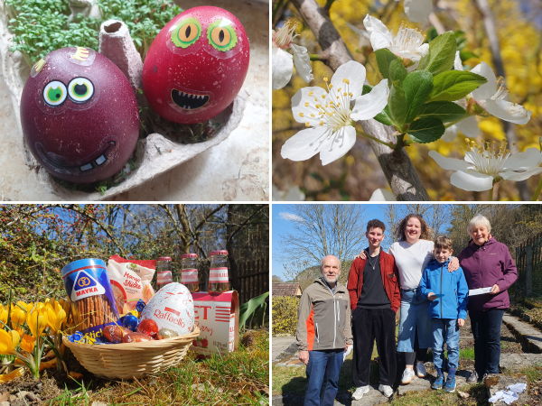 Abweichend von letzten Jahren beginnen die Osterferien mit dem langen Oster-Wochenende, das wir ganz entspannt beim Eierfärben am Karfreitag einläuten. Am Samstag locken Stefans Geburtstagsfeier und der Osterhase nach Winzerla, dessen Spuren wir am Montag bei schönstem Sonnenschein auch noch bis Nennsdorf verfolgen können.
